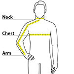 | Chest | 34-36 | 38-40 | 42-44 | 46-48 | 50-52 | 54-56 | 58-60 | 62-64 |